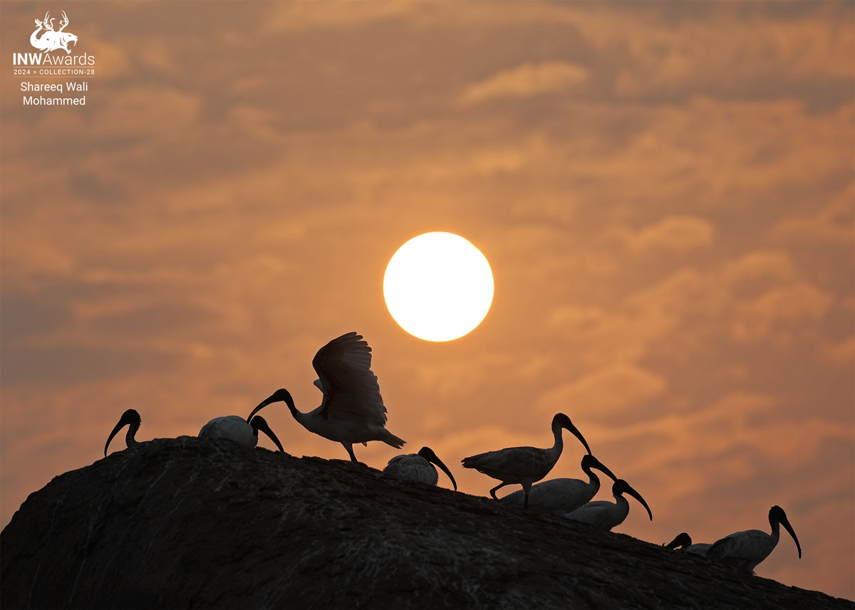 On the Rocks! A flock of Black-headed ibis were seen resting and socializing on a large rock after returning from their daily rituals and feeding on the banks of a adjacent lake. Twilight and the black headed ibis were in harmony to form a speckled rock. Observed near one of the urban lakes of Hyderabad.