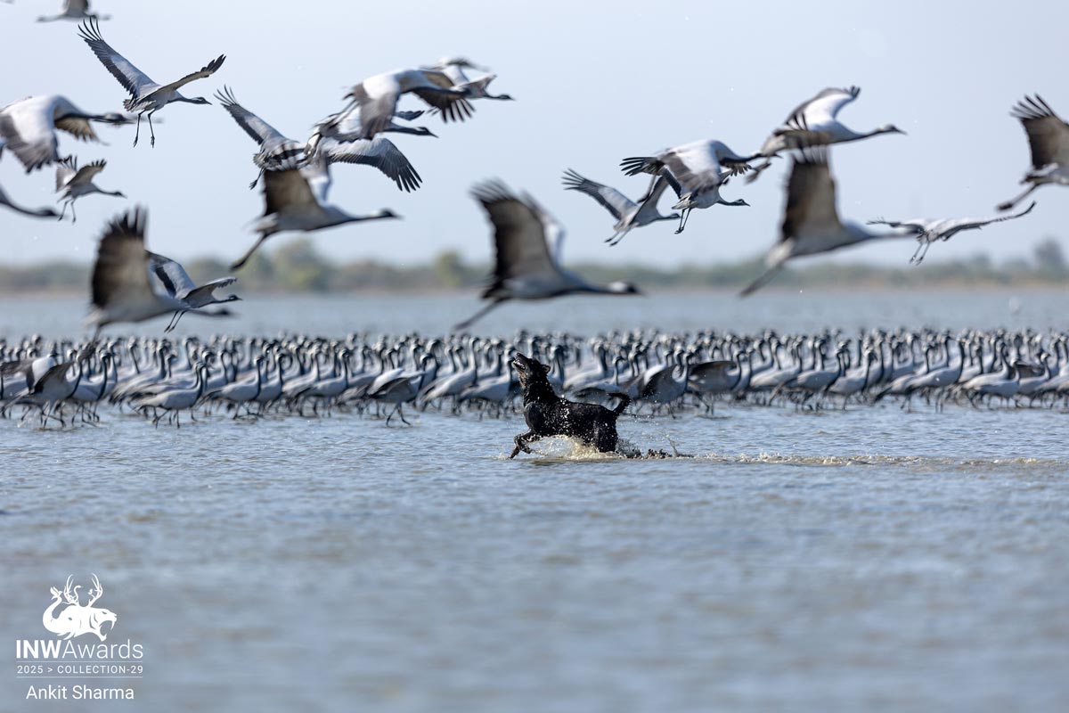 Federal dogs hunting the Demoiselle crane. Todays world this is the most dangerous tscenes happen in our natural habitat areas. The federal dogs going wild hunting birds and other species infact human babies too sometime.