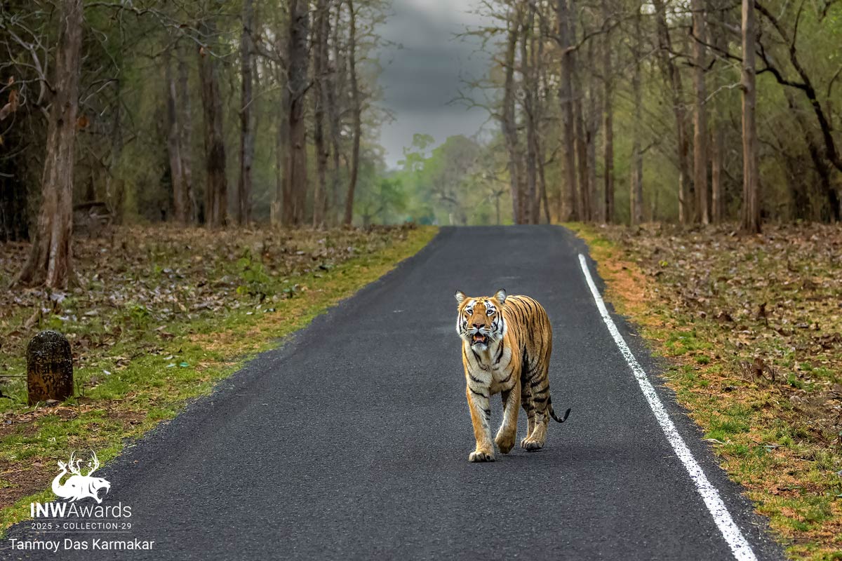 As dusk began to settle over Tadoba Andhari Tiger Reserve in April 2022, I was about to witness a once-in-a-lifetime sighting. During my third afternoon safari, as we were heading back to the resort, my jeep driver suddenly stopped and motioned toward the dense bushes. There, I caught my first glimpse of Lara, a magnificent tiger, hidden within the foliage. Before I could fully process the scene, she stepped onto the open road, walking straight towards us in a breathtaking roadshow. Alone in the wilderness, we watched as Lara marked her territory, her claws carving deep into the trees. I quickly framed this regal moment with my wide-angle lens, capturing her raw power and beauty against the vast landscape. As she disappeared into the forest, the world seemed to pause, leaving me awestruck and speechless, deeply moved by her untamed grace and the overwhelming majesty of nature in its purest form.