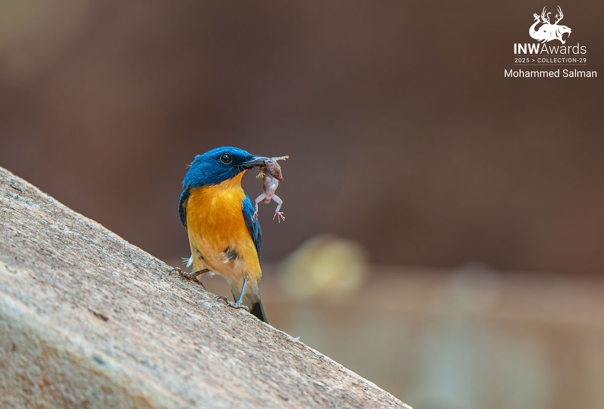 A Tickell's blue flycatcher with a gekko kill from Dandeli.