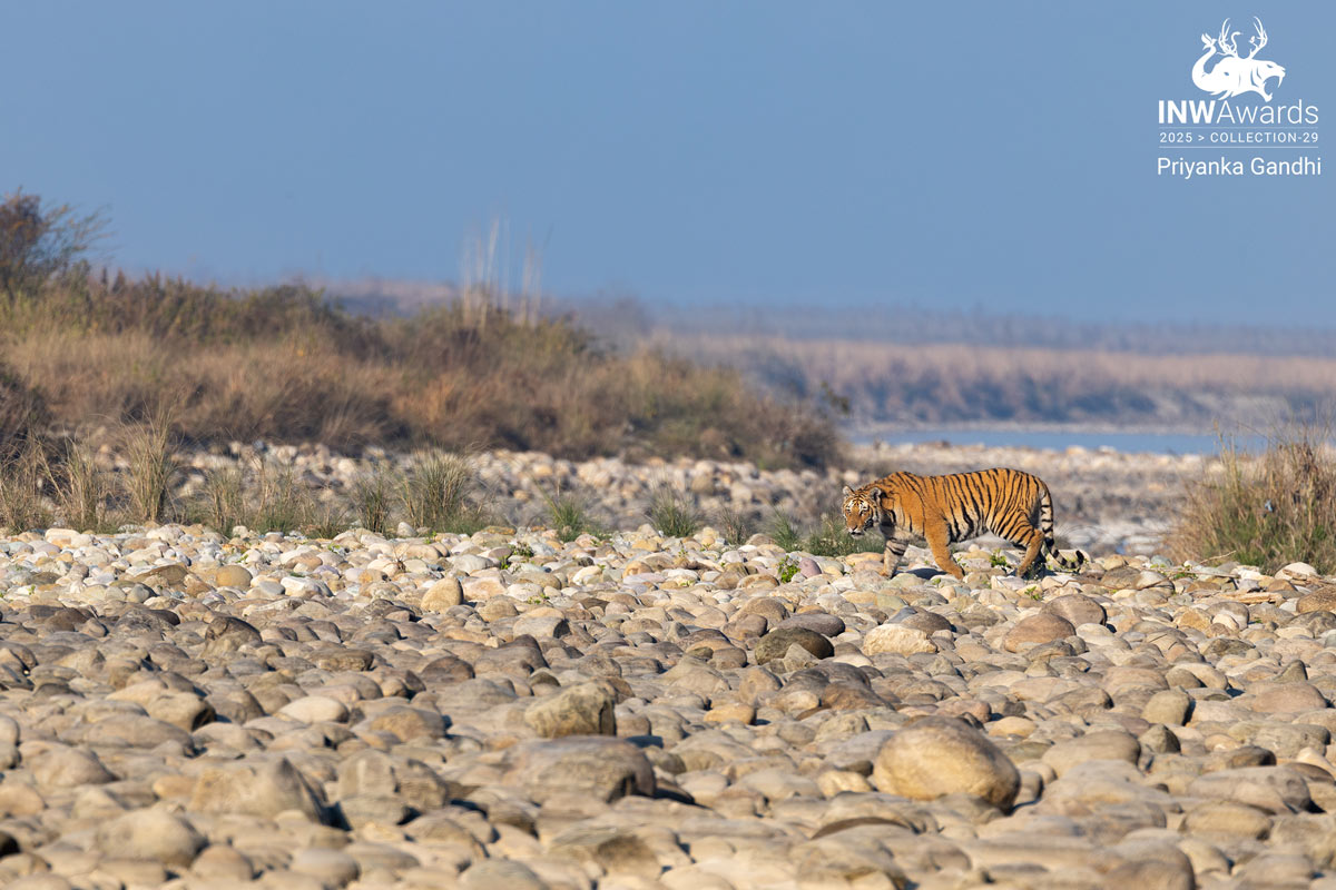 This is almost every photographer's dream shot. A tiger on the white rocks of Corbett. My dream came true when Paarwali's cub decided to cross over to the grass through the white rocks.