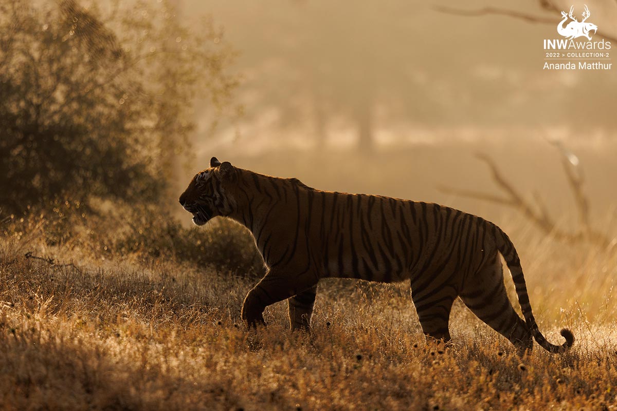 Shadows of the Winter On a cold winter morning at Ranthambhore, we were tracking this tigress, called Riddhi, on a safari gypsy. When we sighted her, we left positioned our jeep against the light, hoping for a backlit opportunity. And she did reward her with the exact frame we were hoping to get, making it a memorable morning. Photographed at Ranthambhore national park, November 2021.