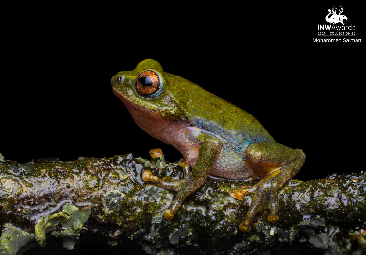 This picture of the Beddome’s Bush Frog was shot in Munnar, Kerala. "Raorchestes beddomii" is a small, vividly coloured amphibian found exclusively in the lush forests of the southern Western Ghats in India. Nocturnal by nature, it emits a soft “tink-tink” call at night from beneath leaf litter or near forest streams. Although striking and ecologically unique, the species faces growing threats from habitat loss and is currently listed as Near Threatened.