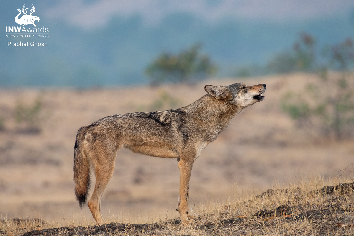 Amidst the golden grasslands, the Indian wolf raises its head in a haunting mid-howl — a primal song echoing across the silent wilderness. This evocative moment captures the essence of a species often overshadowed, yet vital to the ecological balance of its habitat.