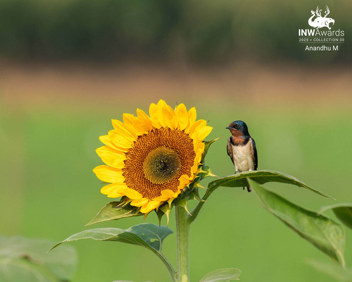 A Moment Between Flights | Puzhakkal Wetland, Thrissur, Kerala, India The barn swallow , a species known for its agile aerial feeding and near-constant flight, rarely pauses for long. Yet here, it briefly rests on the unlikely perch of a sunflower head a delicate pause in its tireless search for insects. This moment captures the intersection of movement and stillness, where the energy of migration meets the calm of a blooming field. A reminder that even nature's most restless travellers find brief anchors in their journey.
