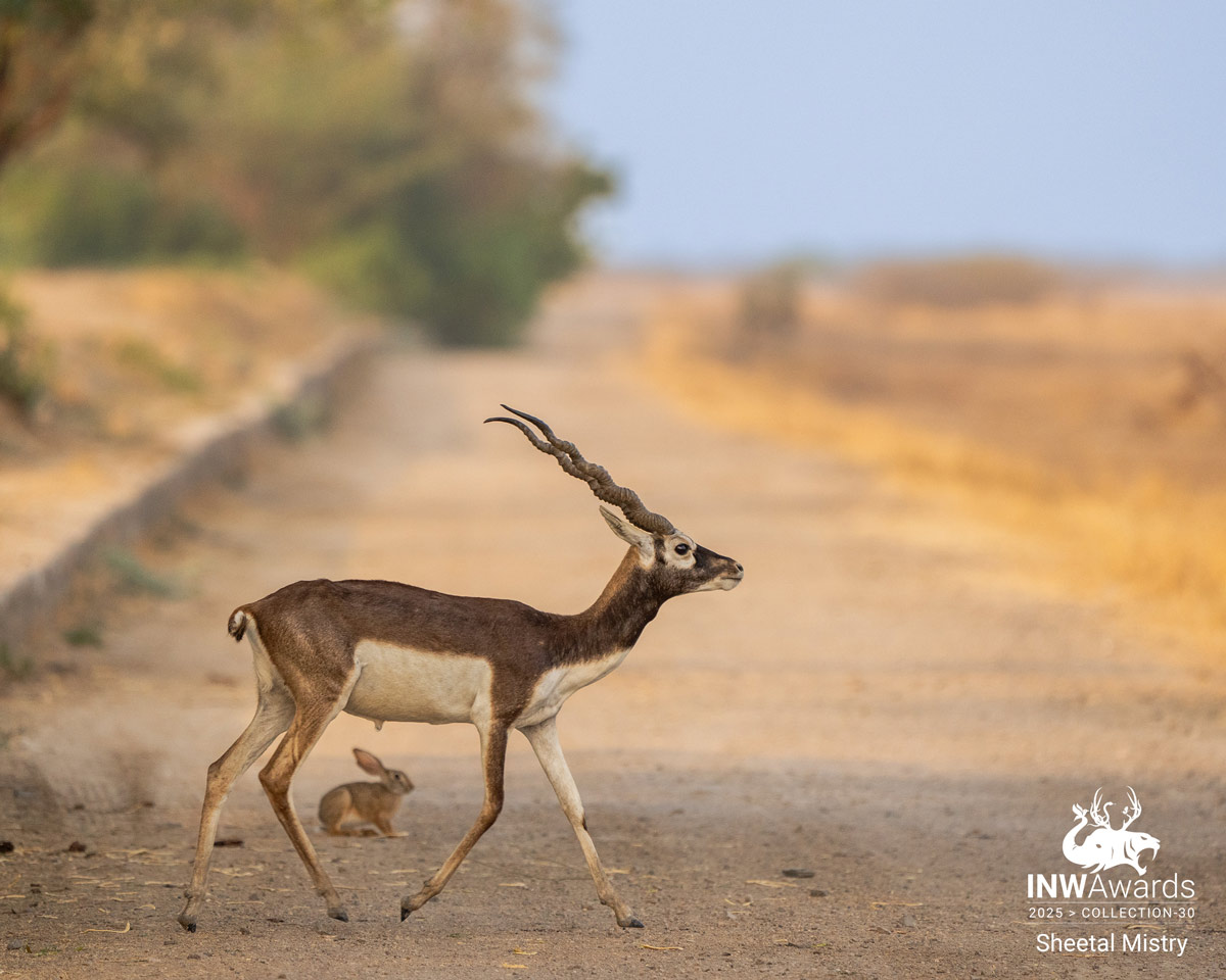 a blackbuck stands tall,silent,and watchful,while a junglee hare finds calm right between its legs .a moment of quiet trust beneath the open sky. Such scenes rare and gentle ,remind you of the quite connections that shape the wild.