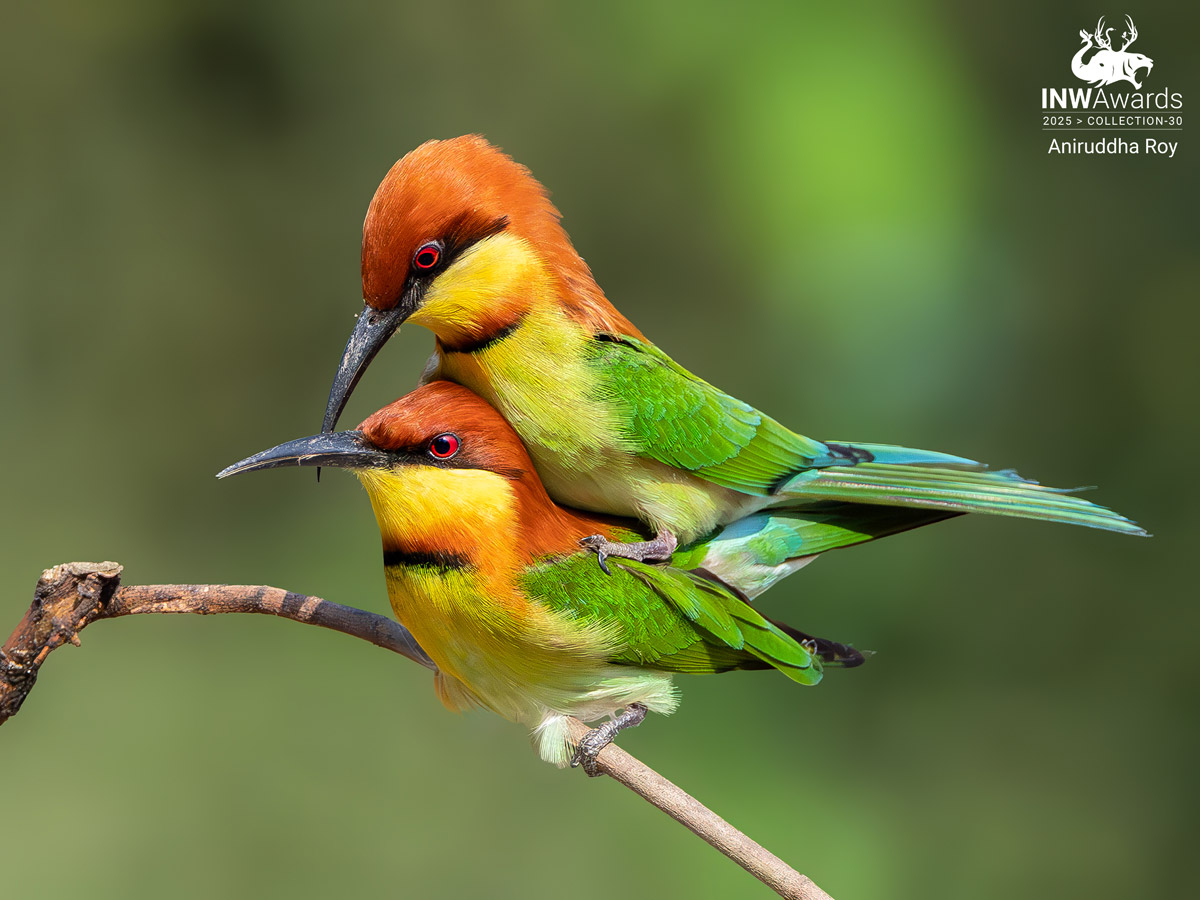 Love is in the air. A beautiful moment of Chestnut-headed Bee-eaters mating was captured last month of March on the outskirts of Khisma Forest in Nadia district of West Bengal. This species was a lifer for me and just wanted a good picture of it. But never have I expected to get a glimpse of their moment of love.