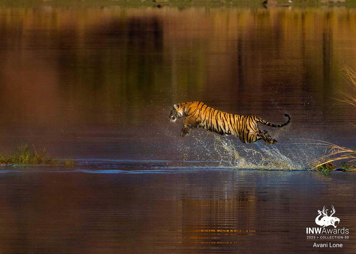 ‘Leap of Faith!’ Tigers are symbols of strength, courage, and beauty! I left the tiger walking down the jungle roads & moved ahead & parked near this lake just hoping if Riddhi passed by these waters, then i will get some amazing shots… It was indeed a lucky day for me in Ranthambore , for I saw this beautiful Tiger in action!