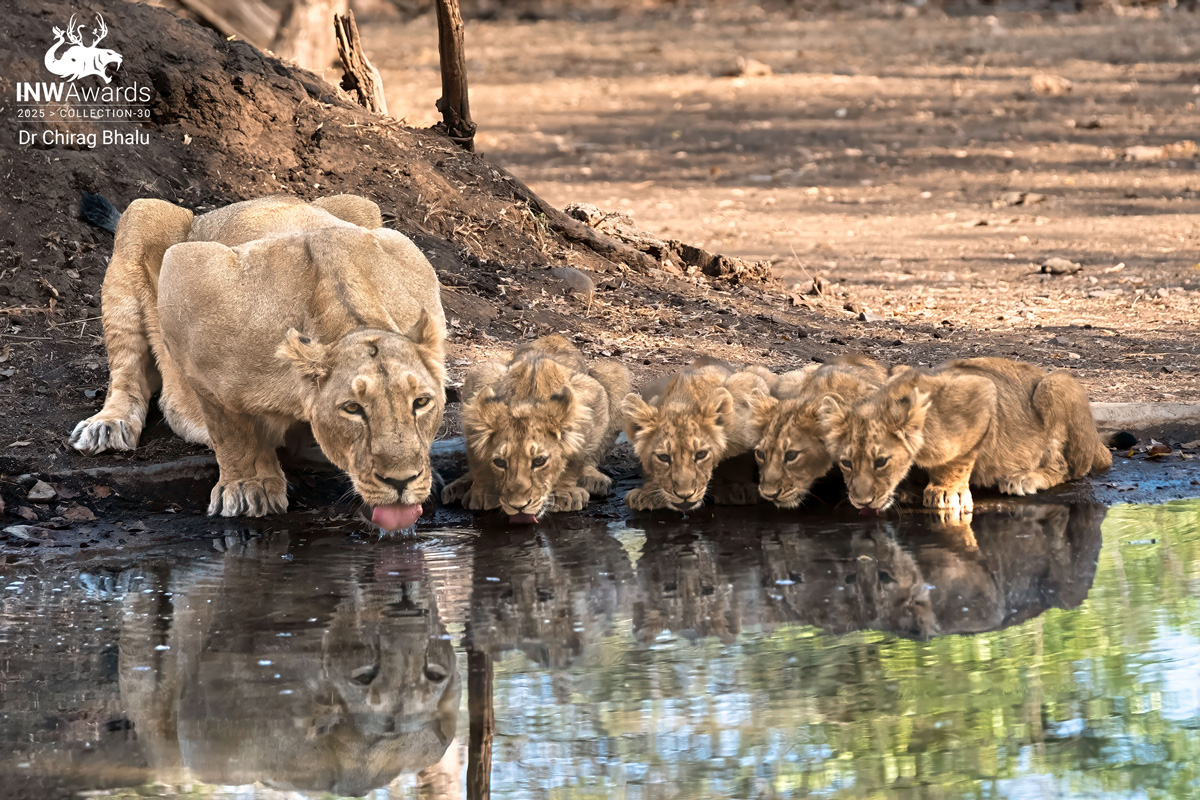 Under the blazing summer sun, a lioness and her four cubs approach the waterhole, their golden coats shimmering in the heat, paws stirring up dry dust with every step. The cubs, full of curiosity and energy, follow their mother, learning the rhythm of survival. As they drink, there’s a rare stillness, a fleeting moment of peace. This is nature at its rawest and most beautiful.