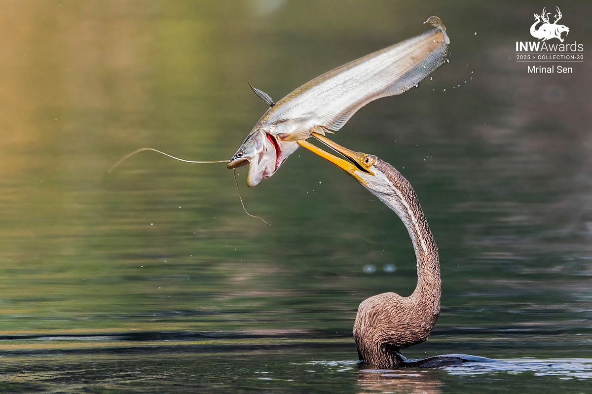 A Big Catch - In the calm waters of Keoladeo Bird Sanctuary, a darter emerges with a splash, gripping a large catfish in its beak. The fish twists and flails, trying to break free, but the bird holds on tight. With a sudden flick of its neck, the darter tosses the fish into the air, trying to position it just right for swallowing. For a brief moment, both bird and fish hang in mid-air—locked in a quiet, wild battle. It’s nature at its rawest—beautiful, intense, and real.