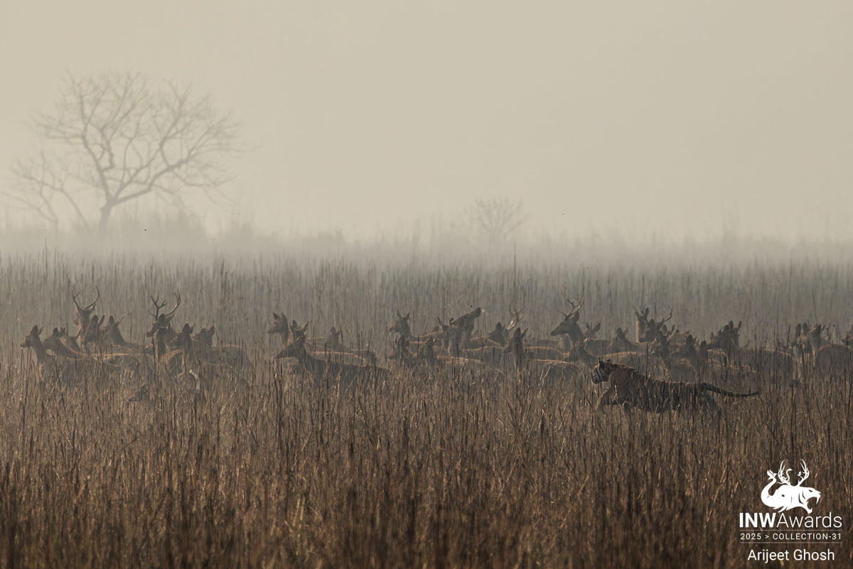 A wall of swamp deers and sudden but swift black shadow moving at the pace of light! A successful hunt!