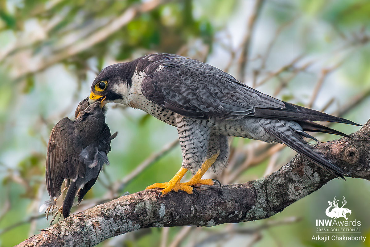 The killing machine with kill. The mighty peregrine falcon killed this jungle myna infront of us in mid-air. It celebrated while carrying the myna and perched right before us in the Indian Sundarbans. Quite the show it was.