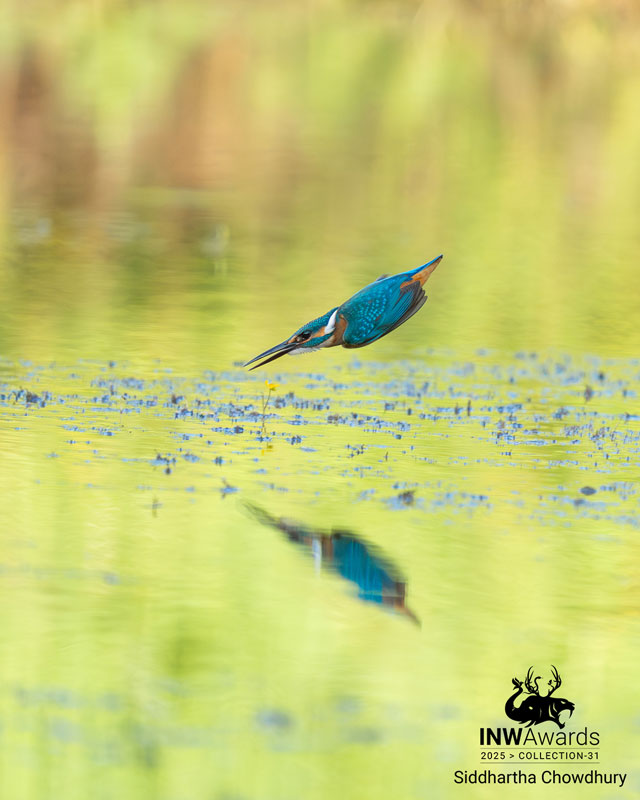 A Common Kingfisher in a split-second dive, nature’s precision and elegance frozen in time. The bird’s reflection on the golden waters mirrors its grace, while its sharp focus captures the essence of the hunt. Moments like these remind us of the fleeting yet powerful nature of wildlife encounters.