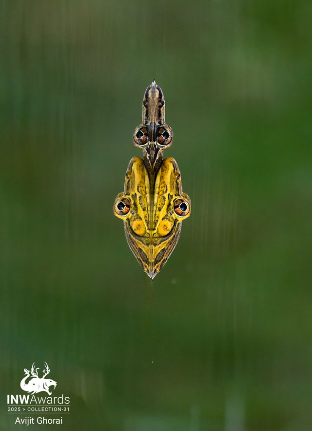 Caption - THE MASKMAN Location - South 24 Pgs, West Bengal, India Clicked on May 2025 Story - This photo is simply a mating Indian Bullfrogs pair that I have captured near my home. What appears at first glance to be a tribal mask or a pair of mysterious human faces is, in truth, nature’s illusion—two Indian bullfrogs mating, captured & rotated. This creative twist on perspective reveals how life, love, and art often intersect in the most unexpected ways.