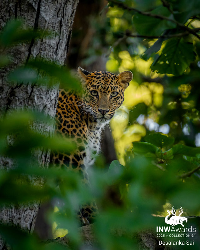 This frame was captured at Jim Corbett after nine dry safaris, when on my tenth drive, luck finally favored me. A leopard emerged, cautiously observing its surroundings-an area also known to be tiger territory, where survival demands constant alertness. Hidden among the foliage, I could barely see it, but by standing on the Gypsy seat, balancing on my toes, and holding my breath, I managed to align my lens for one perfect shot. The piercing eye contact, framed by golden evening light and forest greens, created a powerful composition. Moments later, the leopard descended the tree and vanished into the wild. This single photograph is a reminder that in wildlife, patience, persistence, and timing come together to freeze magic into memory.