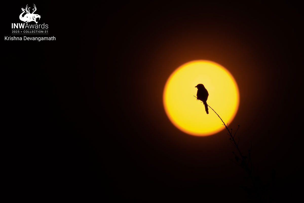 Long tailed shrike and the setting sun Made this image near by lake to my home in Dharwad.