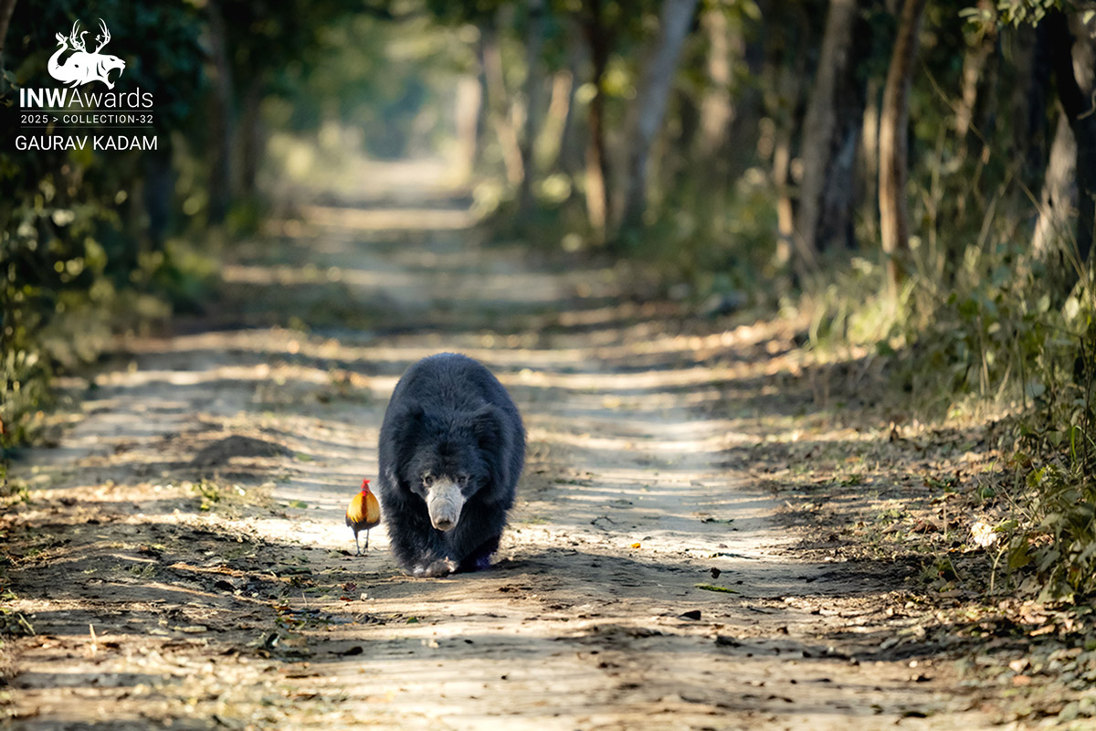 This photograph was captured in March 2025 at the Pilibhit Tiger Reserve. Every wildlife photographer dreams of a perfect head-on shot, but nature often has its own surprises. On this rare occasion, two very different species— a Sloth Bear and a Jungle Fowl—appeared together in the same frame, both offering a head-on view. Witnessing and capturing this unexpected interaction was an extraordinary moment, showcasing the unpredictable and magical side of the wild. This image reflects the beauty of patience, timing, and the wonders nature reveals when least expected.