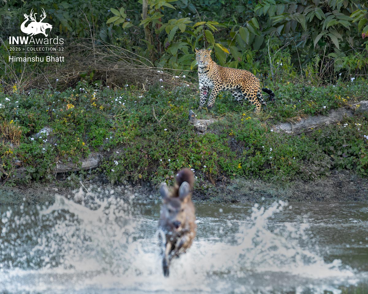 A leopard is an expert hunter but even the perfection has lot of failures hidden behind the success. This moment was from one such failed attempt. Or rather a clever survival tactics on display from the Sambar cub. The cub was chased by Leopardess from forest and the cub came running towards this waterhole and jumped into the water to survive the moment and was successful in that as well. This moment from Rajaji national park is one of the best wildlife moments of my life.