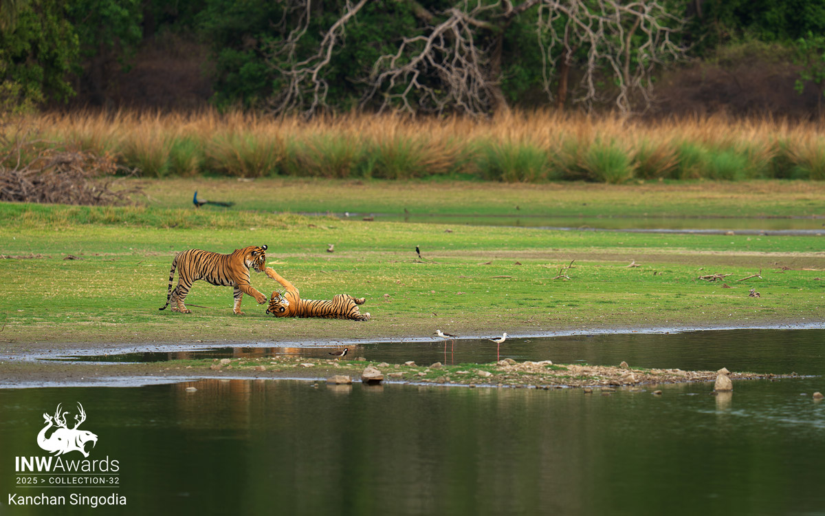 This was the most beautiful thing I have witnessed. The day was about to end and we were stationed at the lake in a hope for a glimpse of the Royals near the lake as the movement was hinting that Riddhi or her cubs might approach the lake. Anticipations were high if any of the tiger will reach the banks of lake before we head out. Time was running out. Suddenly the male cub walked in and headed to the bushes and after a few minutes the female cub walked the same path and headed towards the bank of the lake. Male cub appeared from bushes and approached the female and suddenly they broke into this game of nudging each other. They both sat down looking at each other and our driver reminded us that it was time to head out. It was heartbreaking to leave them like this but there are rules to be followed and I was thankful that I got to see this brother sister duo together.
