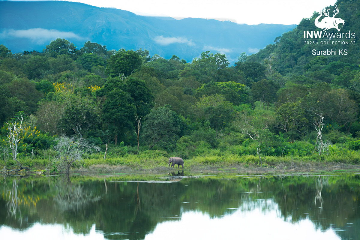 I took this picture in Bandipur during an early morning safari. A lone tusker stood near a waterhole with the mountains rising behind it, and the still water reflected both the elephant and the landscape. The soft morning light, the open forest, and the calm surroundings came together to show the beauty of Bandipur’s habitat. This frame captures the quiet strength of the tusker and the richness of the landscape that supports it.