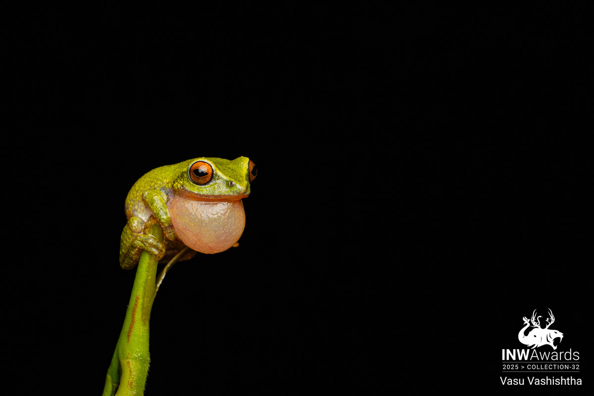 Call of Beddome's Bush Frog: Shot in August 2025 in a quiet tea estate in Munnar, this Bedomme’s Bush Frog was found after a long search in the rain, its call echoing faintly through the shrubs. This tiny Western Ghats endemic is difficult to spot even when it’s close, and its colours come alive only under the right light. The frog was perched on a narrow stem, vocalising steadily despite the drizzle. Moments like this show how rich the biodiversity of Munnar is, especially during the monsoon when these frogs become active for just a short window.