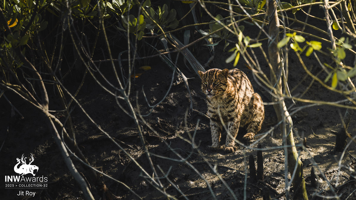This is a rare and remarkable sighting of a Fishing Cat in the Sundarbans, the world’s largest mangrove forest. Known as the state animal of West Bengal, this elusive wild cat is a skilled swimmer and an expert hunter of fish, crabs, and small aquatic prey. Capturing one in daylight, especially within its natural mangrove habitat, is an extraordinary photographic achievement, a true testament to patience and timing in wildlife photography.