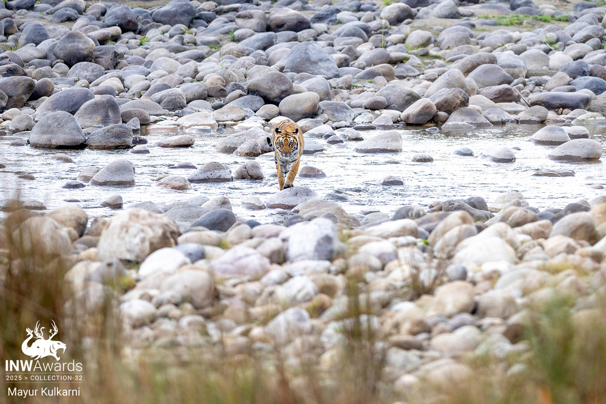 Dream of many photographers witnessing Tiger crossing Ramganga River at Corbett. Photo was taken during our stay at Dhikala Zone, Corbett.