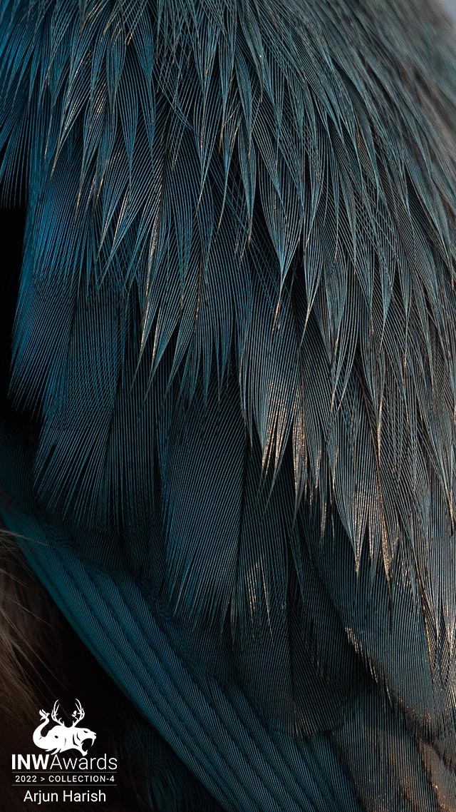 Feathers of a white throated kingfisher. I've tried to capture the beauty of this bird in an abstract and unusual way. This photo was taken in Navi Mumbai using a telephoto lens.