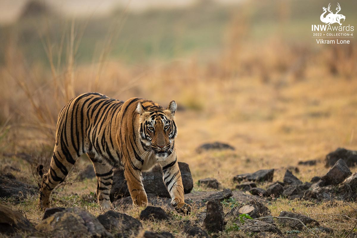 "Tadoba never disappoints". The bold female tigress shot at TATR buffer zone. Early morning we saw this tigress on the stroll in the lovely morning light. Had to follow her for almost 2 hours before she came upon this rocky patch and gave us a pose.