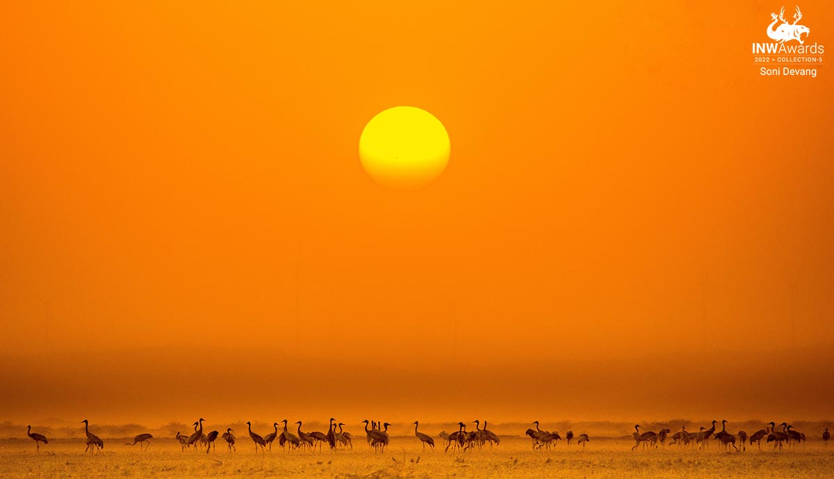 Cranes are a family, the Gruidae, of large, long-legged, and long-necked birds in the group Gruiformes. The 15 species of cranes are placed in three genera, Antigone, Balearica, and Grus. Unlike the similar-looking but unrelated herons, cranes fly with necks outstretched, not pulled back. Photo location :- charidhandh,kutch