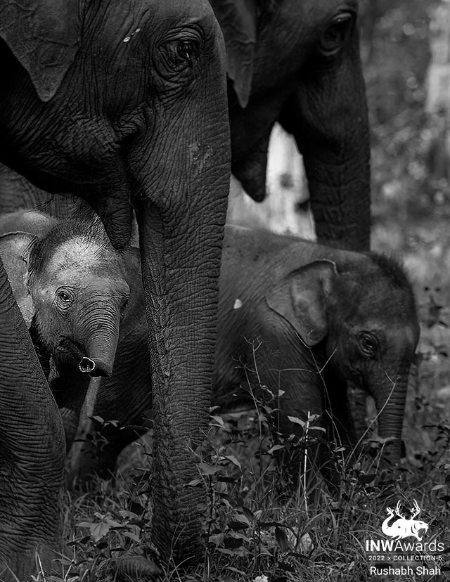 Baby Elephants grazing and playing with their herd and mothers'. This was shot in May 2022 at Nagarhole forest in Kabini.