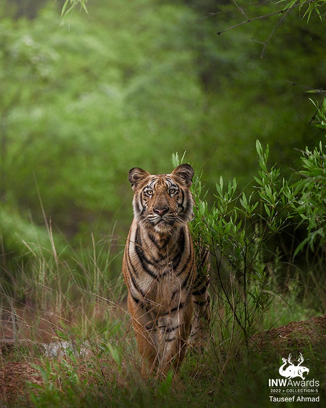 Tigerscape in Rain: This subadult Tiger enquiring our presence just after the Rain has subsided. The beauty of forest and its denizens in rain speaks volumes about the natural world and its aesthetic value.