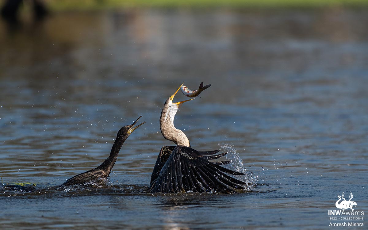It was sunny morning in Jan 2022 at Bharatpur where i have witnessed Oriental Darter who was busy catching fish and while the darter was trying to gulp it down, suddenly one cormorant surfaced and both of them were soon locked in chase which was later won by Darter.