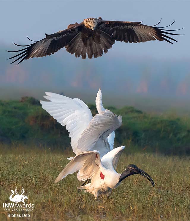During my visit to Manglajori, Odisha, India, a marshland, I observed the battle of a Brahminy Kite with Black-headed Ibis. Actually, Black-headed Ibis caught a snake from the marshland, the Kite suddenly noticed and take a chance to snatch the snake from Ibis. But like a friend a Great Egret did a full support with Ibis against that Kite. This is one of the rare moment, my good luck that I got a chance to capture their war.