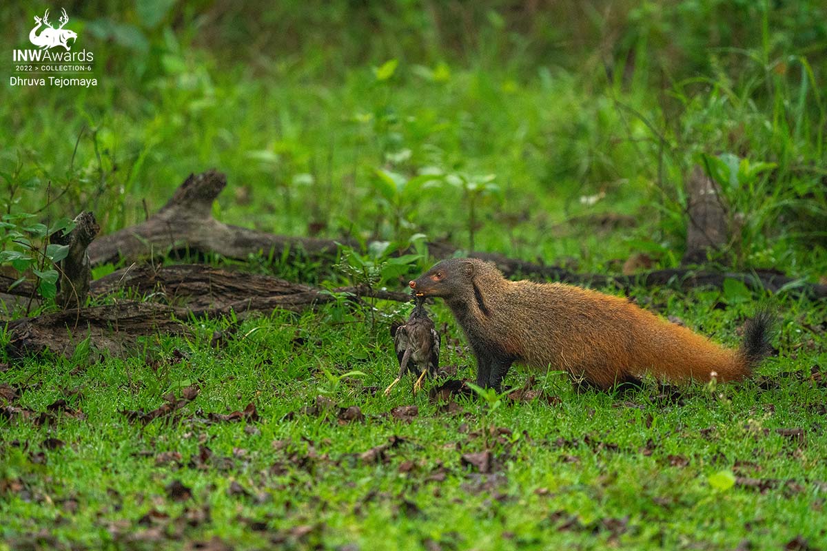 Mongoose with a myna kill Extremely rare to see a Mongoose with a bird kill in the open may 22.