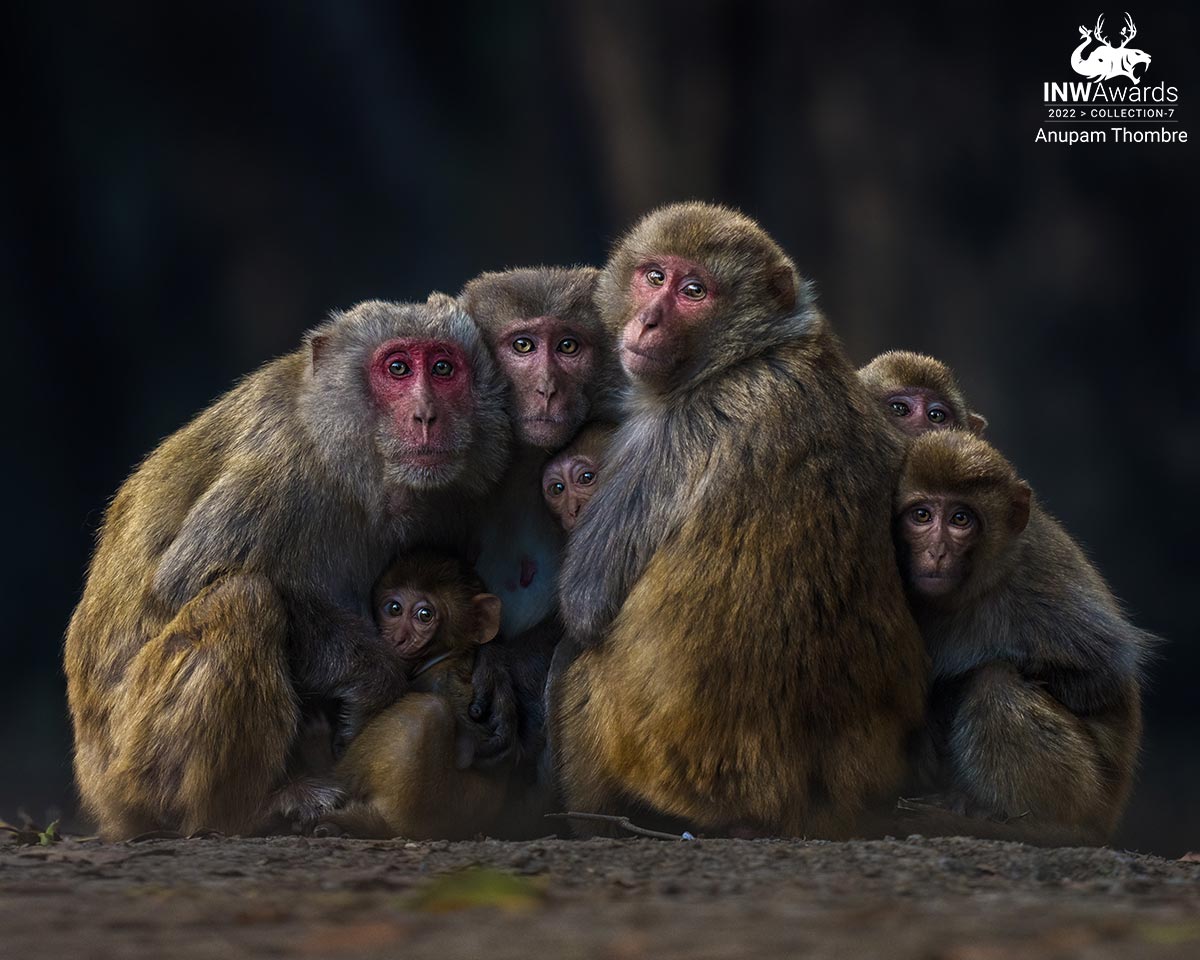 Family is everything ! These Rhesus Macaques sit huddled up together on a cold foggy morning on the main road side at Keoladeo Ghana National Park. The young once are held tightly by the mothers, to keep them safe from cold, while they peep with curiosity, what the human is doing sitting close by them ! One of them even approached me and looked inside my lens-hood to check for food ! Their eyes are so beautiful and expressive and the light falling on them was absolutely beautiful ! A simple yet very intriguing moment in my diary of experiences ! Gear used: Sony alpha 1 + FE 400mm f 2.8 GM OSS Exif - ISO 800, f4.5, 1/80 Location: Keoladeo Ghana National Park, Bharatpur, Rajasthan