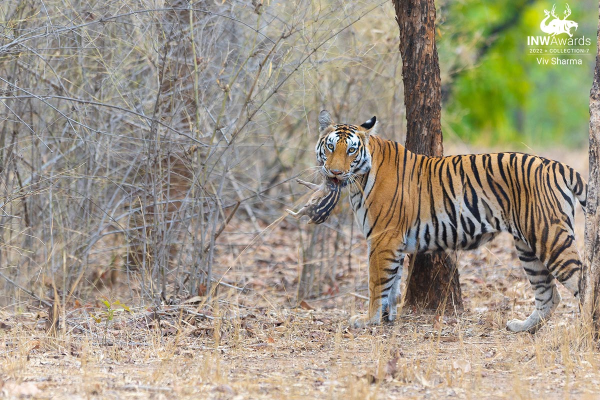 A new-born Wild piglet killed by a tigress for her cubs. The death of this piglet was followed by the death of all the other piglets too of the same litter which would be really heart-breaking for their mother, but really important for the tigress. This rare moment was captured in Bandhavgarh tiger reserve.