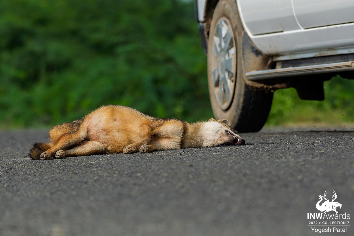 Jackal roadkill Jackal roadkill in early morning. Please drive carefully and slowly whenever you are going through any countryside or wildlife reserve area. Click using Nikon D3300(200-500 Nikkor)