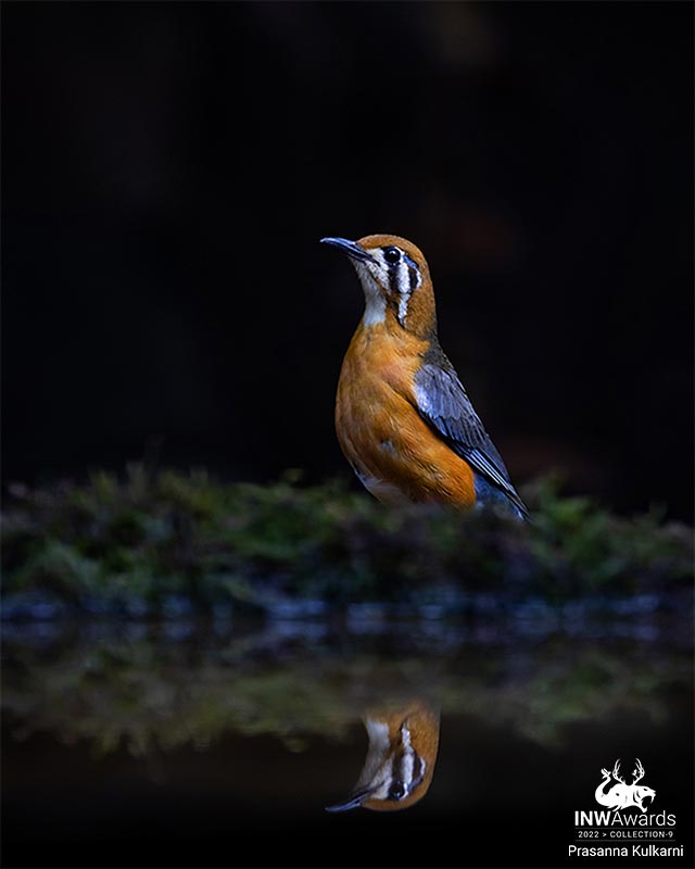 A reflection of Orange-Headed Thrush. Location: Outskirts of Pune