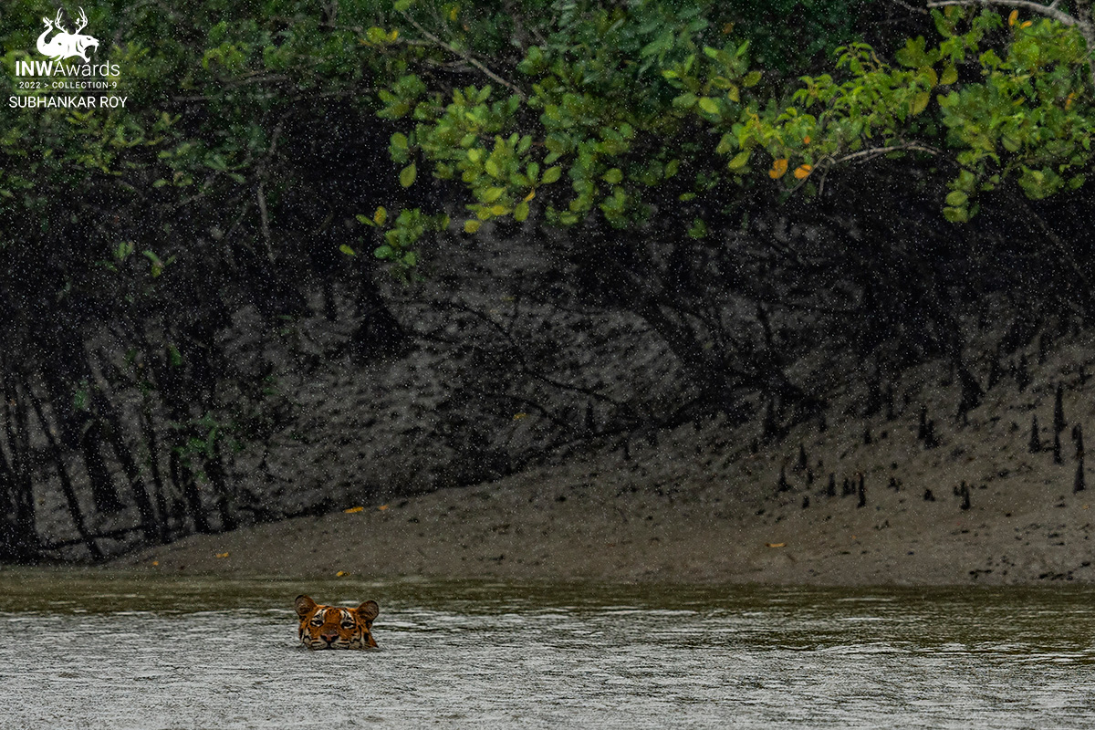 During my last trip to Sundarban Tiger Reserve, West Bengal in the month of August, this year, I captured this moment of this tiger crossing the river in drizzle. From a distance it could hardly be realized that it was a tiger until my guide spotted it. Entire body of this giant animal was in the water. The moment it looked at us made my day.